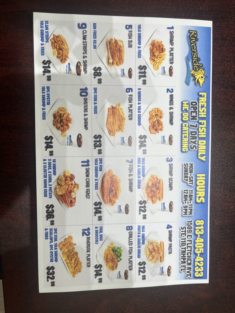 The highlight of the menu is the Riverside Platter, featuring an impressive mix of fish, shrimp, oysters, scallops, and fries for just $34.99. For shrimp lovers, the Shrimp Scampi boasts 15 large shrimp served with garlic bread and rice at a reasonable $14.99. For those craving comfort food, the Chicken Pasta is a must-try, enveloping grilled chicken in a rich Alfredo garlic butter sauce.